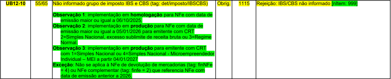 Se esses campos estiverem ausentes, a SEFAZ retornará a rejeição 1115 – IBS/CBS não informado [nItem: 999]