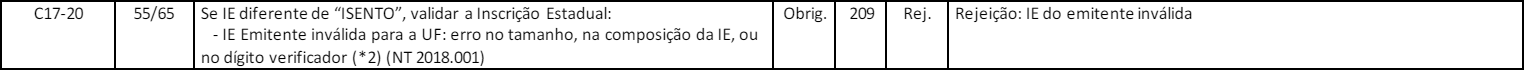 Regra de validação da SEFAZ: