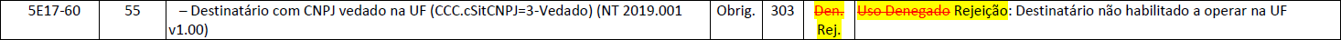 A Rejeição 303 - "Destinatário não habilitado a operar na UF" ocorre quando uma empresa tenta emitir uma Nota Fiscal Eletrônica (NF-e) para um destinatário cujo CNPJ está vedado, ou seja, não habilitado a operar na Unidade Federativa (UF) onde está localizado. Esse tipo de rejeição impede a realização de operações fiscais com o destinatário na UF especificada.