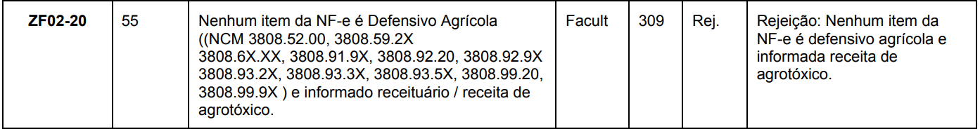 Essa rejeição ocorre quando você informa na nota fiscal um número de receita agronômica, mas nenhum dos itens da NF-e está classificado como agrotóxico ou defensivo agrícola.