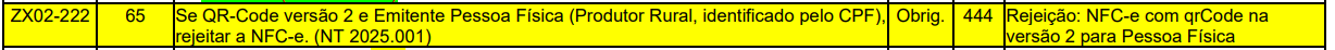 Essa rejeição acontece quando você tenta emitir uma NFC-e com o QR Code configurado na versão 2, e o destinatário informado é uma Pessoa Física (CPF).