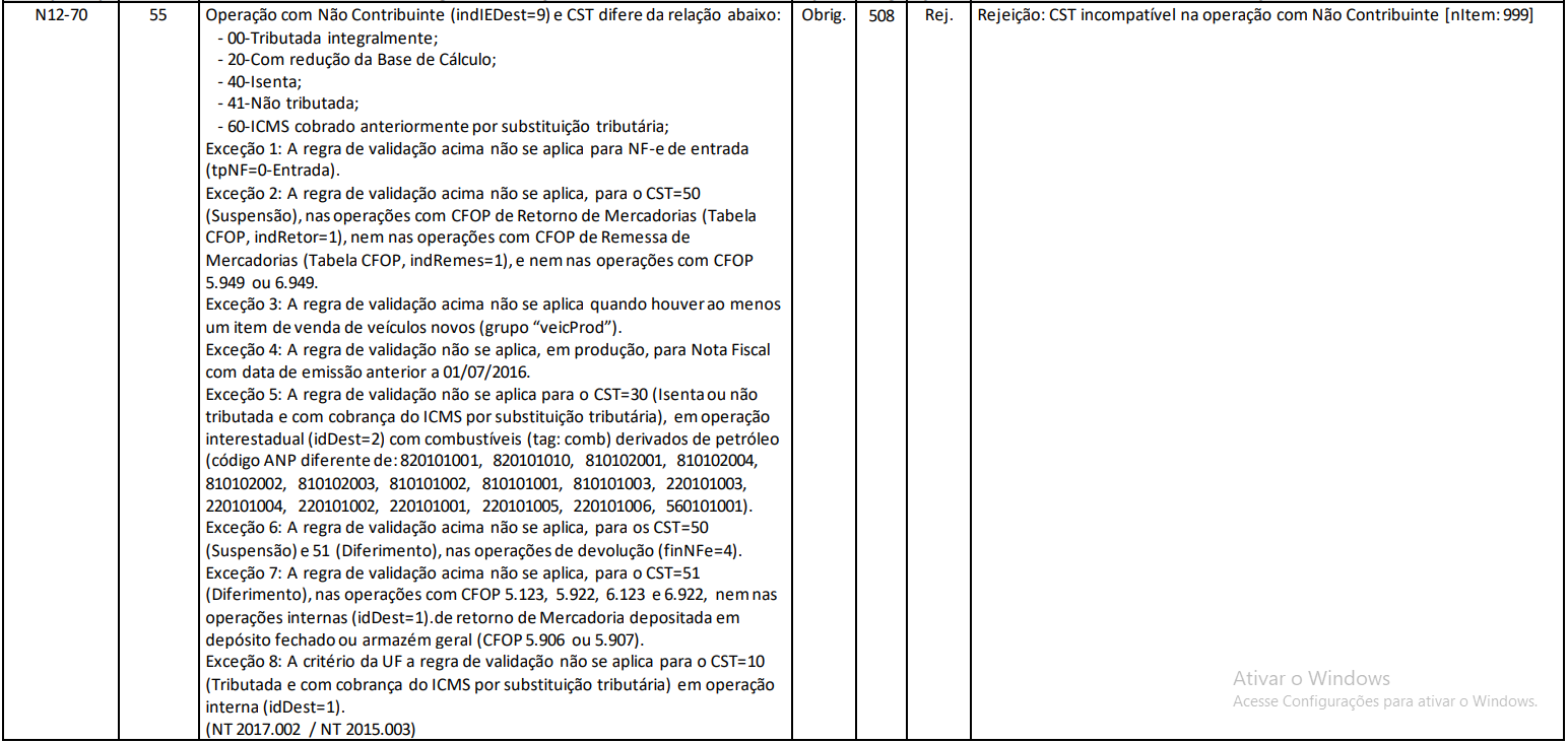 Isso ocorre porque determinados códigos de CST são válidos apenas quando o destinatário da nota é contribuinte do ICMS. Ao tentar utilizar esses códigos em uma operação com um não contribuinte, a SEFAZ irá rejeitar a nota com a seguinte mensagem: "Rejeição 508: CST incompatível na operação com Não Contribuinte".