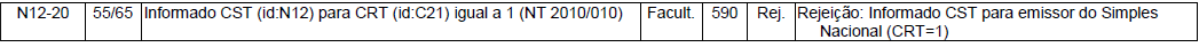 **"590 – Informado CST para emissor do Simples Nacional"**.