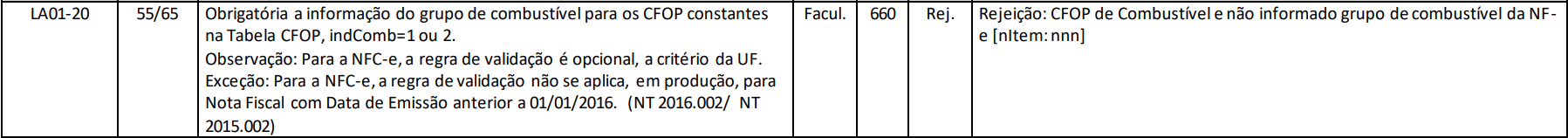 Uma empresa emite uma NF-e com o CFOP 5.405 – Venda de combustível ou lubrificante de produção do estabelecimento, mas não preenche o grupo de informações exigido para produtos combustíveis (como tipo de combustível, ANP, mistura, entre outros). A SEFAZ então rejeita a nota com o motivo 660 – CFOP de Combustível e não informado grupo de combustível da NF-e.