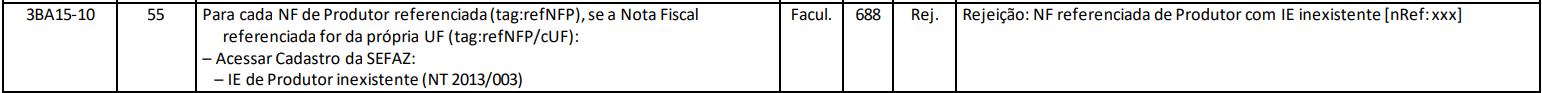 Uma empresa emite uma NF-e e, no campo de notas referenciadas, informa uma nota modelo 4 com IE do produtor como "123456789". Ao validar a IE com a SEFAZ do estado de origem da nota, o sistema identifica que essa inscrição não existe e rejeita a NF-e com o código 688.