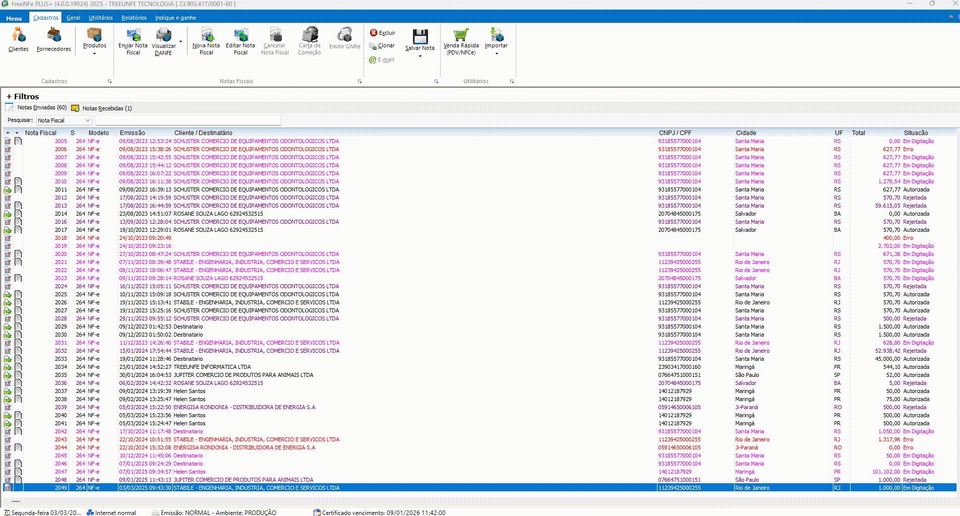 Acesse a Nota Fiscal com a rejeição: localize e abra a nota fiscal que está apresentando a rejeição.