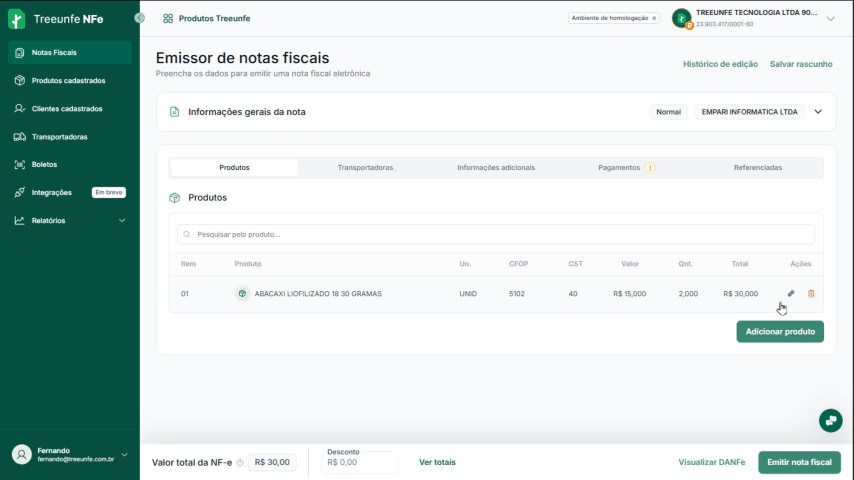Como corrigir no Treeunfe NFe?