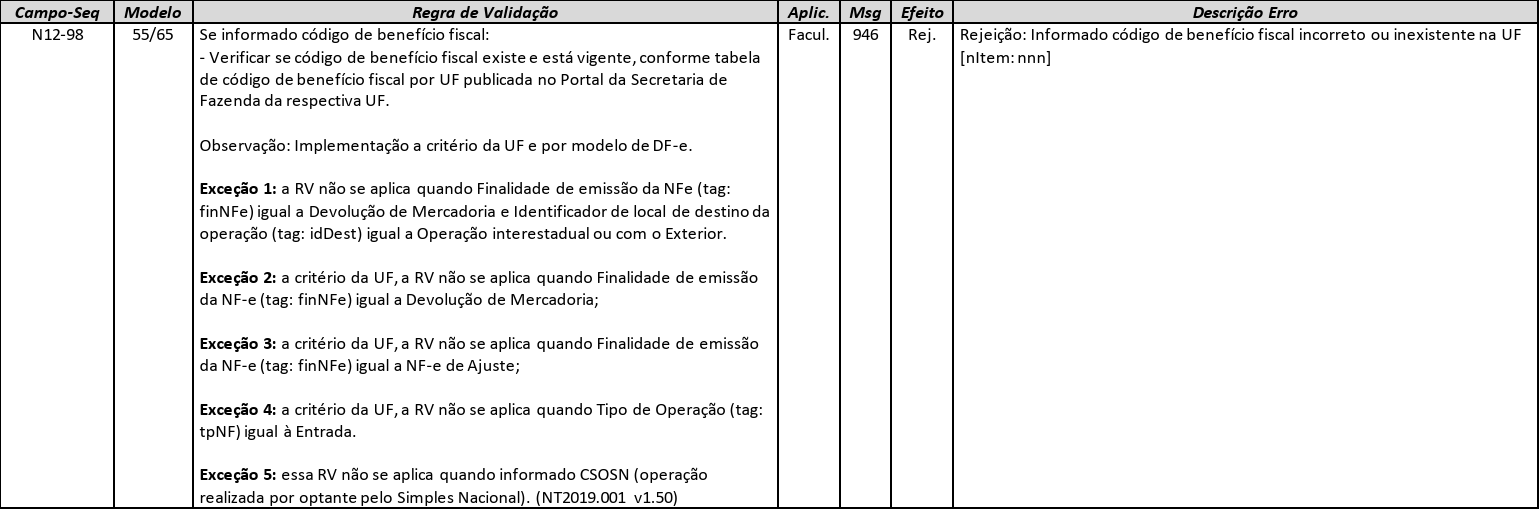 **"946 – Informado código de benefício fiscal incorreto ou inexistente na UF"**.