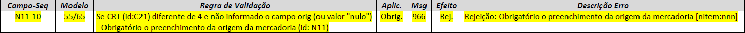 A Rejeição 966 - "Obrigatório o preenchimento da origem da mercadoria" ocorre quando uma empresa tenta emitir uma Nota Fiscal Eletrônica (NF-e) sem preencher o campo obrigatório de "origem da mercadoria". Essa rejeição é gerada pela SEFAZ quando o Código de Regime Tributário (CRT) do emitente é diferente de 4 (ou seja, o emitente não é um Microempreendedor Individual - MEI) e o campo "origem da mercadoria" (orig, id) não foi informado ou está com valor "nulo".