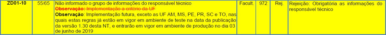 Regra de validação da SEFAZ: