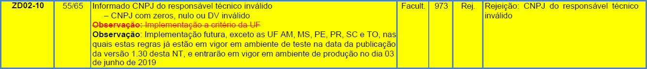 Regra de validação da SEFAZ: