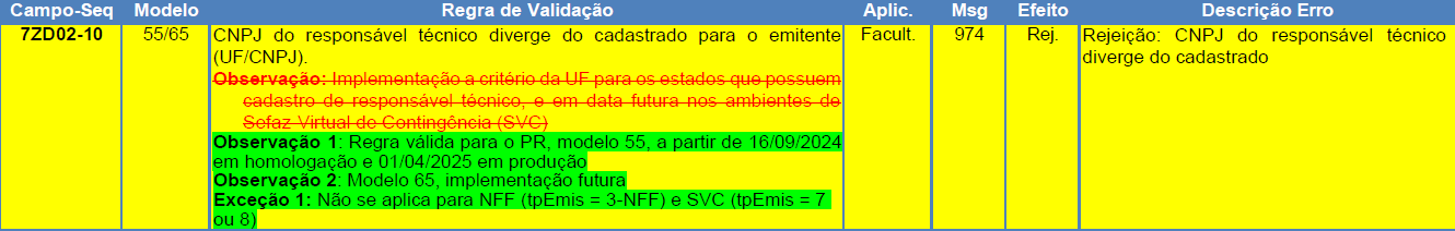Regra de validação da SEFAZ: