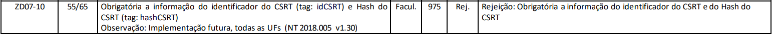 Suponha que uma empresa emita uma NF-e e inclua no XML o grupo de informações do responsável técnico, mas deixe de preencher os campos idCSRT e hashCSRT. Nesse caso, a SEFAZ retornará a rejeição 975, indicando a obrigatoriedade dessas informações.
